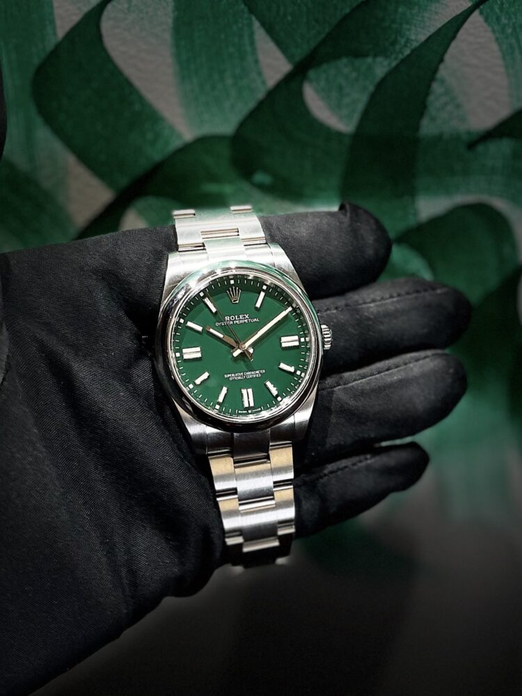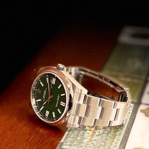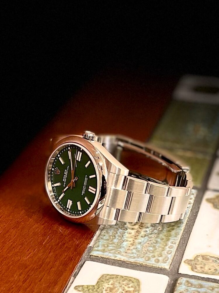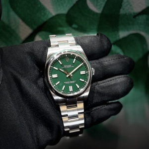 翡翠の様な綺麗なグリーン色が特徴的なカラーダイヤルのRef.124300