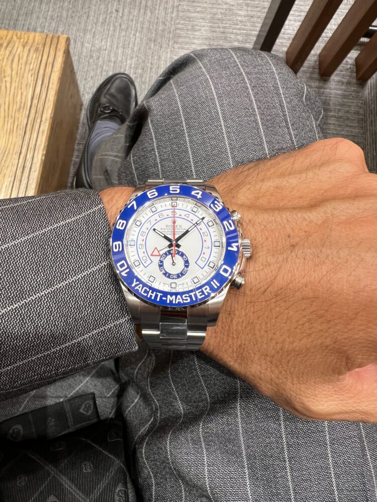 2014年から2024年まで製造されていたヨットマスターII Ref.116680です。皆様ご承知の通り、最近入荷が少ないヨットマスターIIとなります。ステンレス素材に鮮やかなブルーのセラミック製ベゼルがカッコ良いです。レガッタクロノグラフ機能を搭載していて、カウントダウンタイマーが特徴です♪本日入荷したばかりで、今現在は何と全店在庫1本のみです!是非、一度店頭でご覧くださいませ。