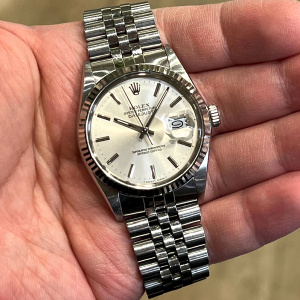 デイトジャストの18Kホワイトゴールド×ステンレスモデルにおいて初めてハイビートムーブメントを採用したモデルで、日付早送り(クイックチェンジ)が可能ですので操作性も比較的容易なため、ファーストヴィンテージロレックスをお探しの方にもおすすめです。