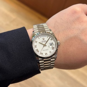 ホワイトシェルダイヤルの煌びやかな輝きが印象的なDATEJUST41です。