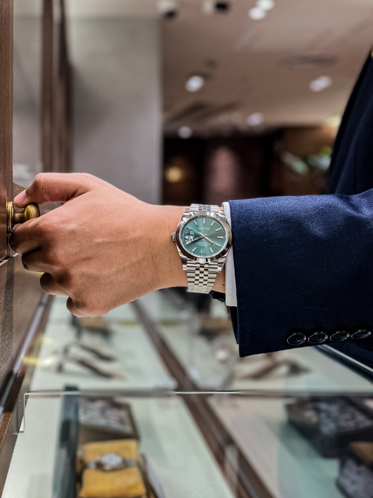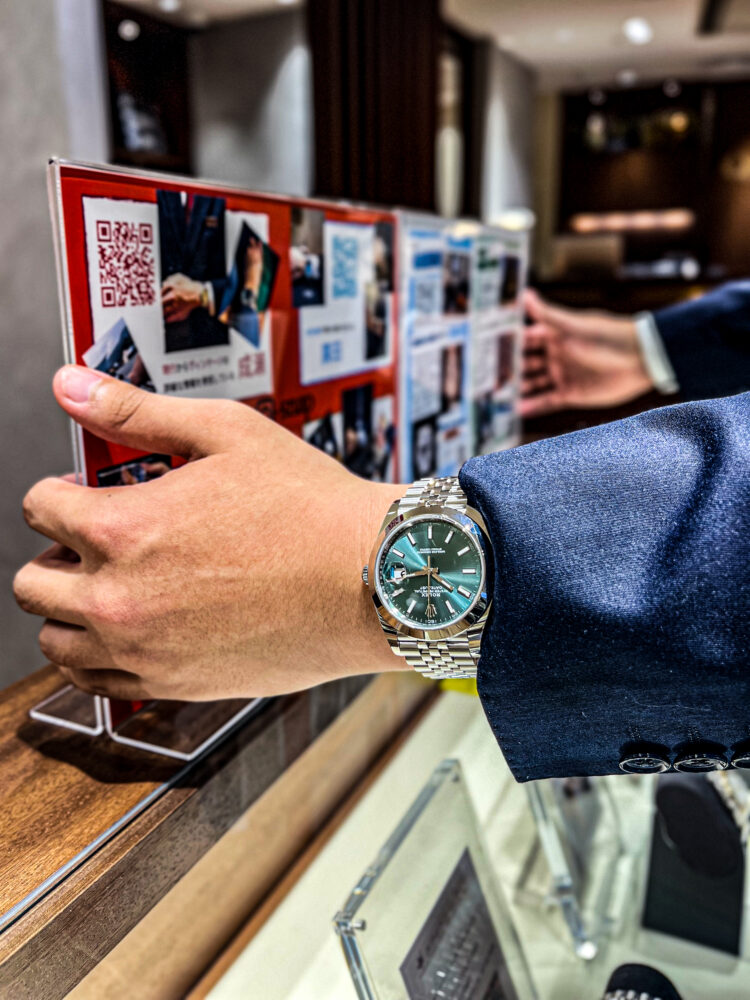 爽やかなミントグリーンダイヤル。 後藤 クォーク名古屋駅店 2026.01.27 DATEJUST 41 Ref.126300 サンレイ仕上げのミントグリーンダイヤルが、名古屋駅店に入荷いたしました。 爽やかなミントグリーンカラーのダイヤルですが、サンレイ仕上げになっているので、角度によって別の表情をお楽しみ頂けます。 お仕事の時でも着用しやすい、ツルッとしたスムースベゼルと、肌馴染みの良いジュビリーブレスの組み合わせとなっております。 他にもDATEJUSTシリーズのご用意がありますので、是非名古屋駅店までお越し下さいませ。 新品 デイトジャスト クォーク名古屋駅店 このスタッフへ問い合わせる この商品の詳細はこちら