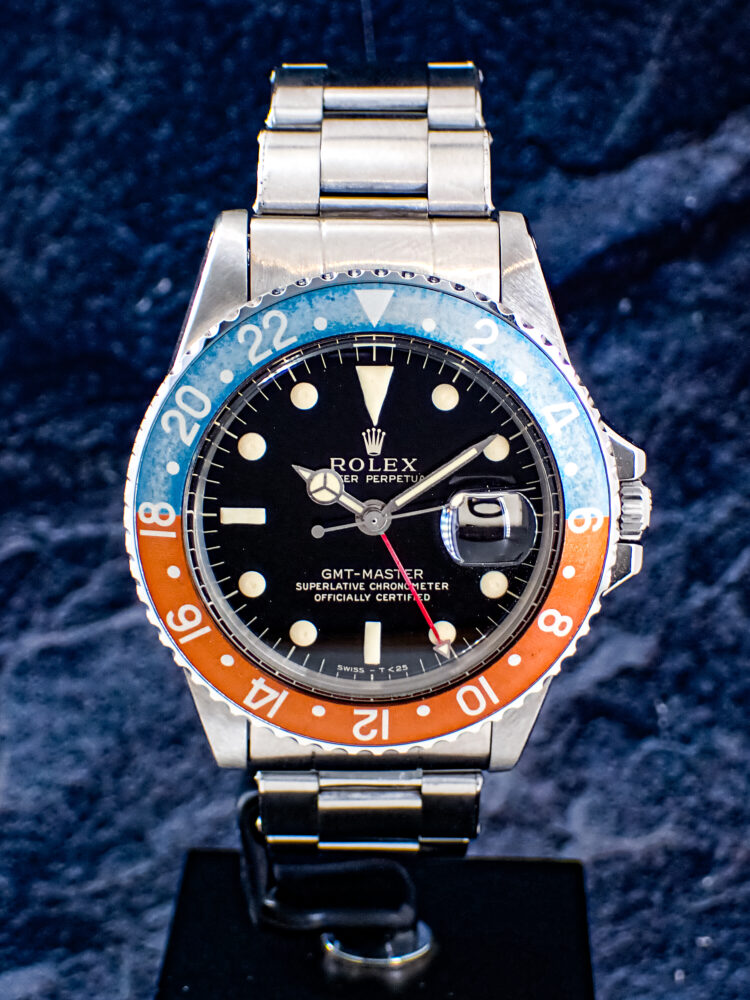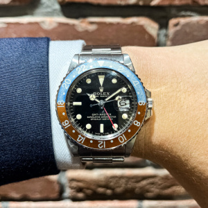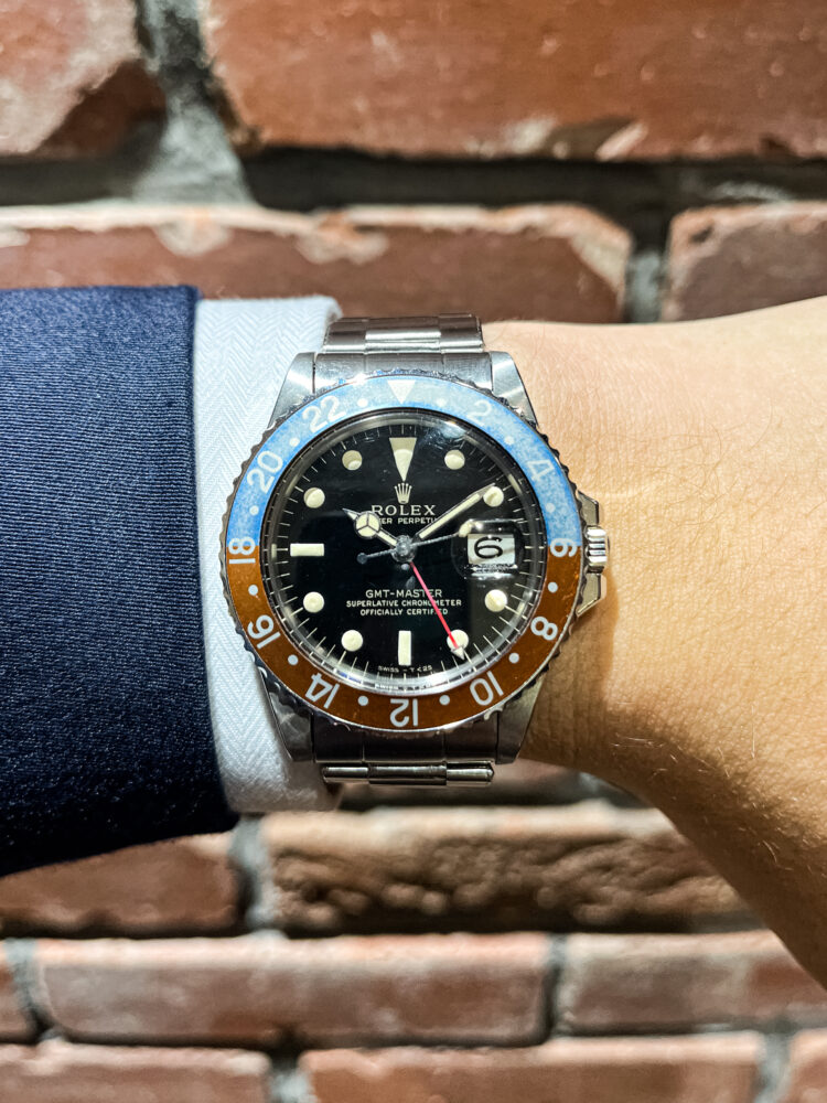デニム×ブラウンのベゼル 後藤 クォーク名古屋駅店 2026.02.03 GMT-MASTER Ref.1675 今回は、個人的にかなり好きな色味に経年変化をしている、GMT-MASTERのRef.1675のご紹介です。 ベゼルはマーク1の赤青ベゼルでしたが、赤は深みのあるブラウンへ、青はデニム感のある水色へと変化しております! ダイヤルは、艶感のしっかりと残ったミラーダイヤルで、ベゼルとの相性も非常に良い個体でございます。 気になられた方は、Quark名古屋駅店までお越し下さいませ。 ヴィンテージ GMTマスター クォーク名古屋駅店 このスタッフへ問い合わせる この商品の詳細はこちら