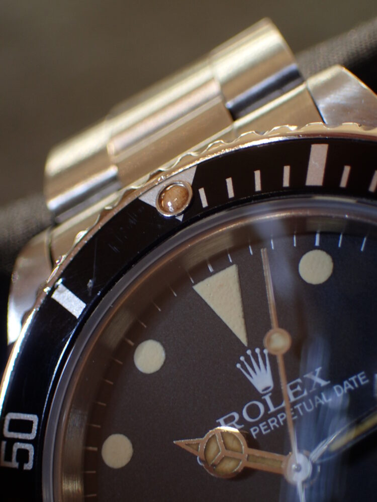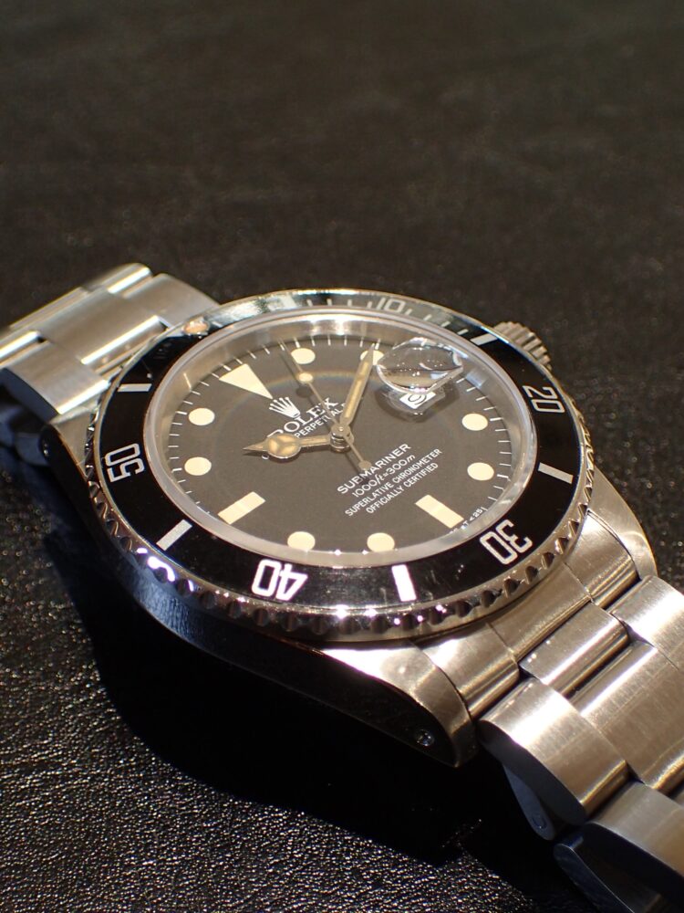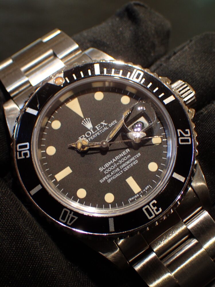 濃く焼けた夜光が魅力的なヴィンテージ・サブマリーナー/Ref.16800 フチなしダイヤル。