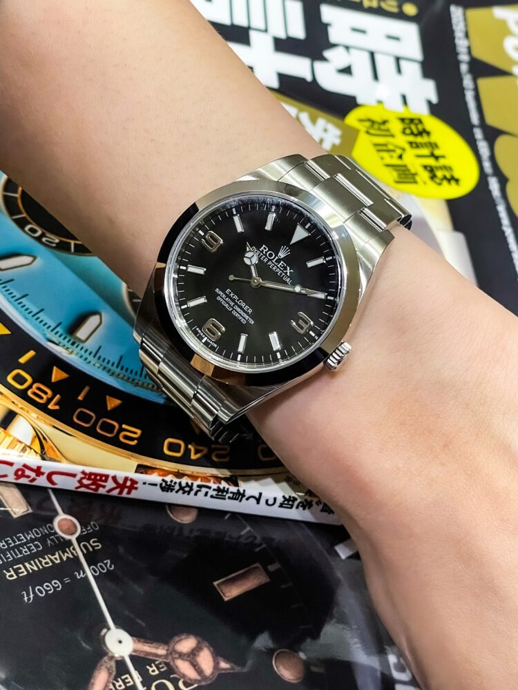 今回は大人気モデルRef.214270を着けてみました。インデックスの369が鏡面になっている、通称「ブラックアウト」が中々渋くてカッコ良い。シンプルですが、デザインのバランスが取れているので、人気である理由が分かりますね。