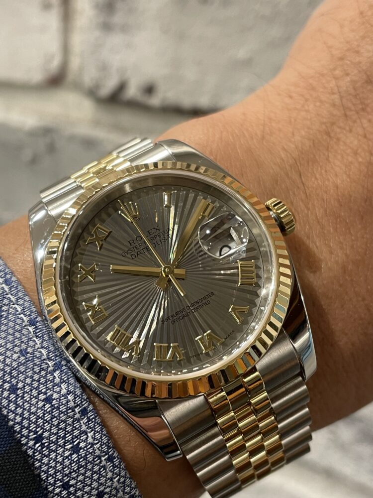 時間よりも 堀 クォーク心斎橋店 2025.10.07 最近見かけなくなったサンビームダイヤルのデイトジャストが入荷しました。 正直なところ、時間は読み取りづらいですが、それに勝る高級感と特別感を持ったモデルです。 あたかもバックルがないようなラグジュアリーなコンシールドクラスプもポイントです。 是非腕元に乗せてください。 デイトジャスト 中古品 クォーク心斎橋 このスタッフへ問い合わせる この商品の詳細はこちら
