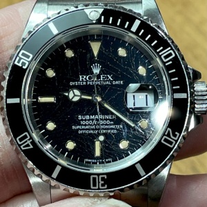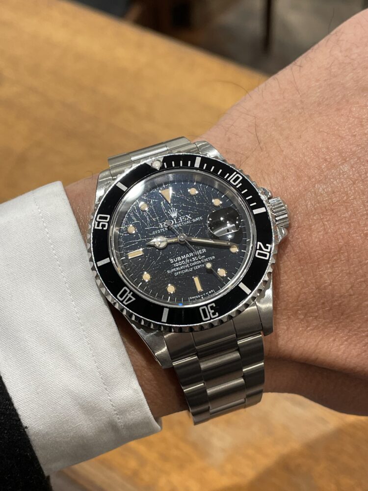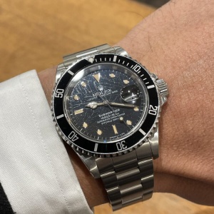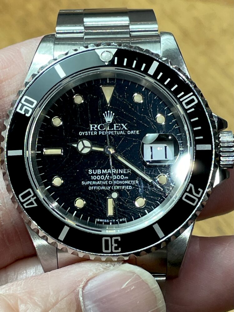 唯一無二のエイジング 堀 クォーク心斎橋店 2025.12.04 1989年製のサブマリーナー ダイヤル、針ともに濃いヤケで雰囲気良いですが 注目すべきは、フローズン調にエイジングしたダイヤル。 「ブラックジャック」とでも命名したいくらいのかっこよさです。 もちろんバースイヤーモデルをお探しの方にもオススメです。 是非腕元に乗せてください。 プレミアムモダン サブマリーナー クォーク心斎橋 このスタッフへ問い合わせる この商品の詳細はこちら