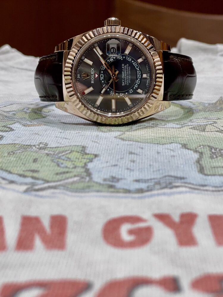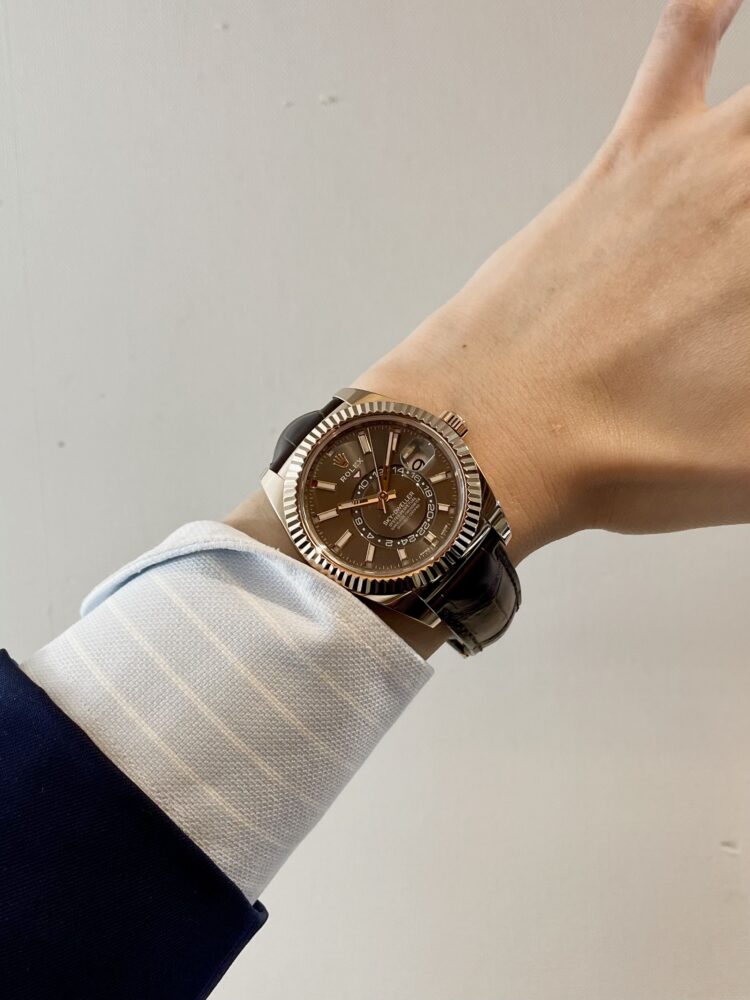326135でジェットセッター気分 堀家 エキスパート クォーク神戸店 2026.03.23 『スカイドゥエラー』と言えばロレックスの複雑時計。 世界中を自家用ジェット機で飛び回る“ジェットセッター”と呼ばれる人たちをコンセプトにしたモデルですよね。 そんな“ジェットセッター”に憧れて、地球柄のTシャツ(スペインのビール会社のデザインだそうです)に大地とロレックスをイメージしたグリーンのカーディガンを合わせてみました。 ただ本当のジェットセッターがこんなラフな格好をしているのか、庶民の私にはわかりませんですが……。 中古品 スカイドゥエラー クォーク神戸店 このスタッフへ問い合わせる この商品の詳細はこちら