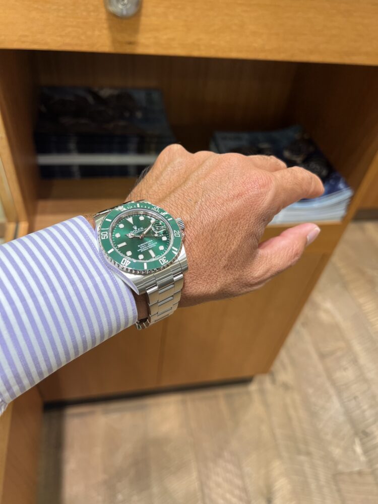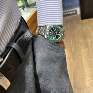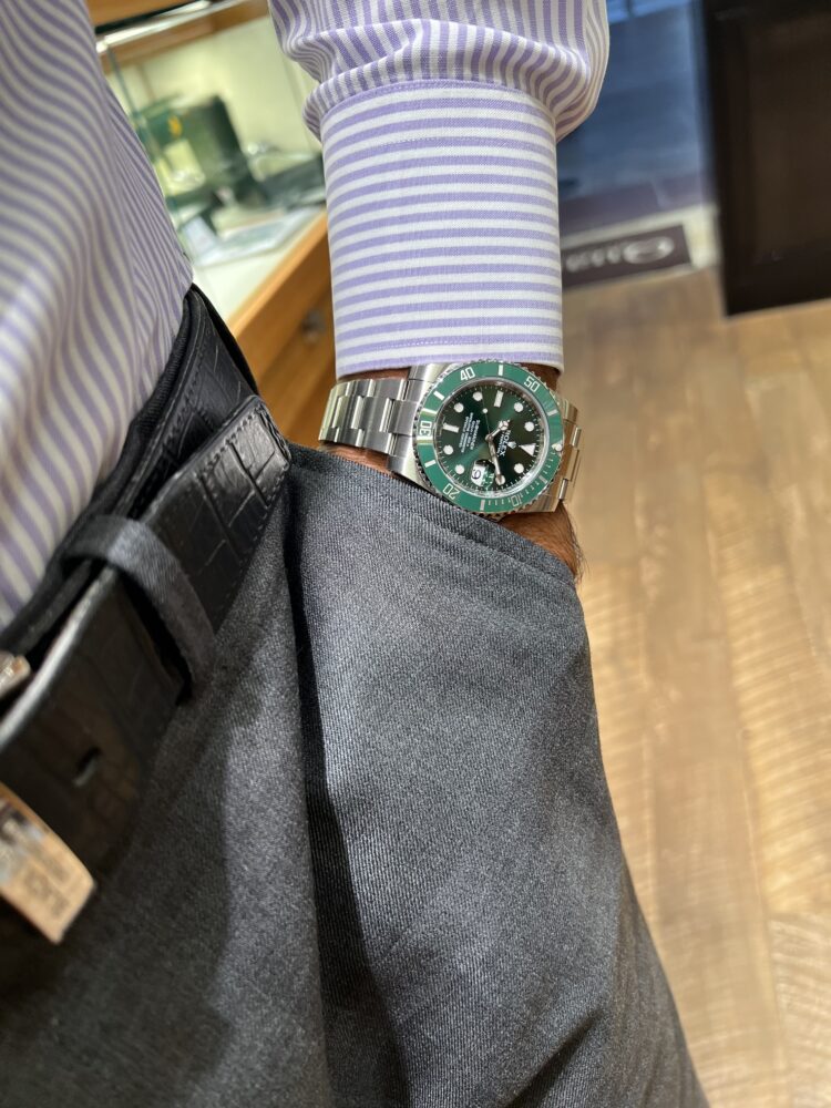 2010年から2020年まで製造されたグリーンサブマリーナーRef.116610LVです。耐傷性に優れたセラミック製ベゼルを備えたサブマリーナーでベゼルカラーはロレックスのコーポレートカラーのグリーン。そして、ダイヤルも色鮮やかなグリーンでインパクトは抜群です!久しぶりに神戸店へ入荷しました。