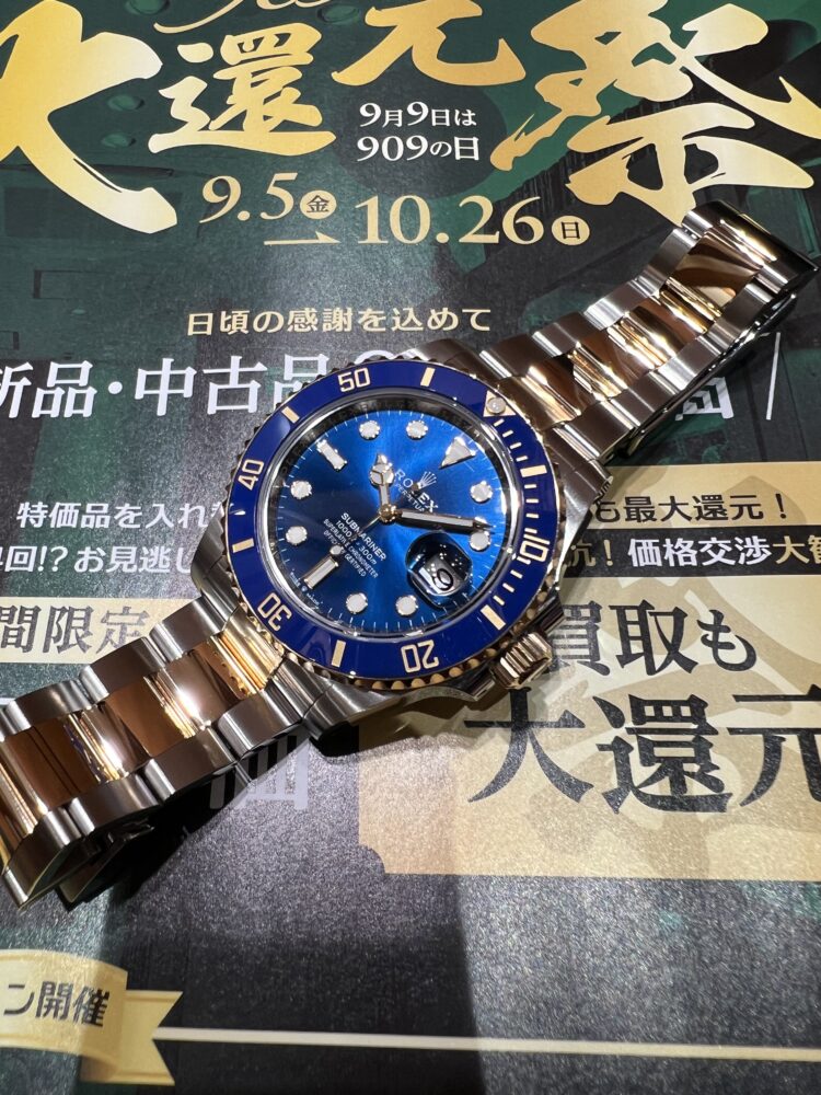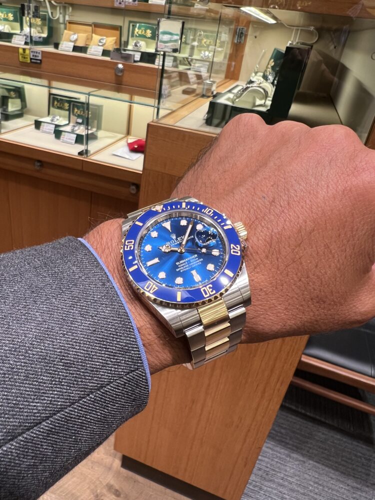 美!ロイヤルブルー!! 増田 シニアエキスパート クォーク神戸店 2025.10.04 2020年に誕生した現行型サブマリーナーRef.126613LBです。新世代ムーヴメント3235を搭載しており、70時間のロングパワーリザーブを誇ります。ダイヤルは色鮮やかで美しいロイヤルブルーが目を惹きます!ケース径は41ミリで迫力がありますし、ブレス幅も太くなりバランスのとれたデザインに仕上がっております。入荷の少ない1本ですのでお探しの方は必見です♪ 中古品 サブマリーナー クォーク神戸店 このスタッフへ問い合わせる この商品の詳細はこちら