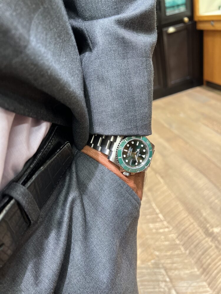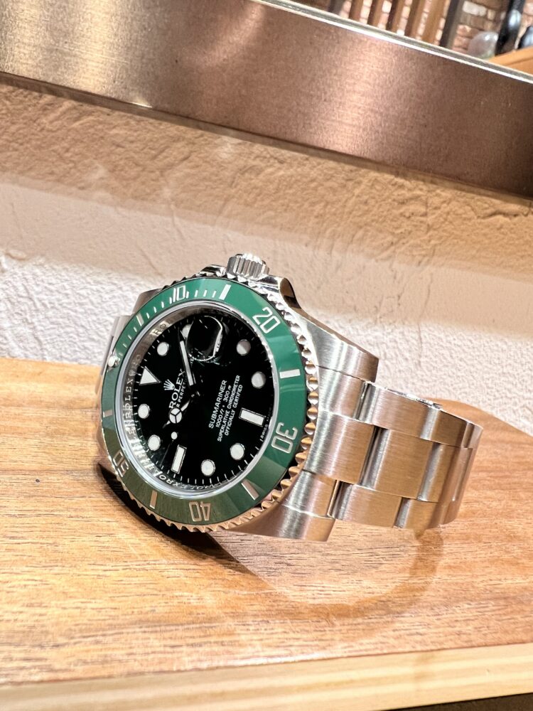 外せないカラー 増田 シニアエキスパート クォーク神戸店 2025.10.13 2010年から2020年まで製造されたサブマリーナーRef.116610LVです。ロレックスのコーポレートカラーであるグリーンをベゼルとダイヤルに採用している希少な1本となります。ロレックスの象徴的なグリーンは外せないカラーですね♪サンレイ仕上げが施されたダイヤルは角度によって見え方も異なり美しいです。売れ筋のモデルですので、是非一度ご試着ください。 中古品 サブマリーナー クォーク神戸店 このスタッフへ問い合わせる この商品の詳細はこちら