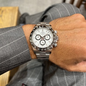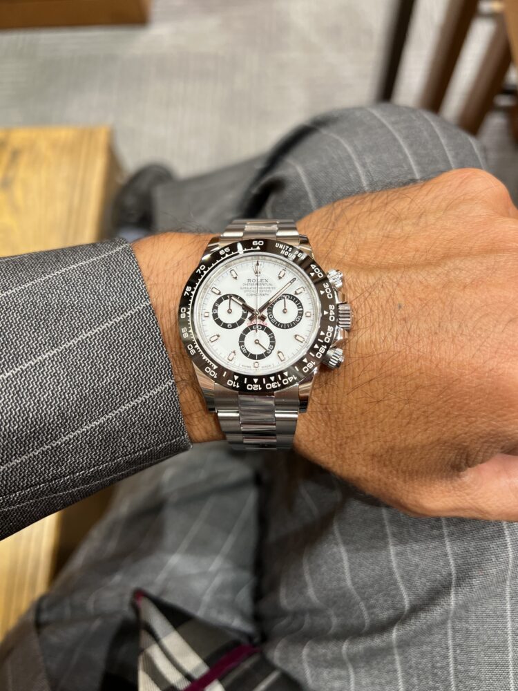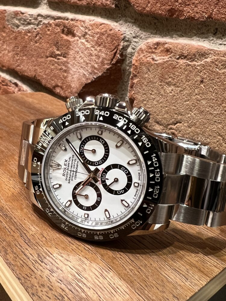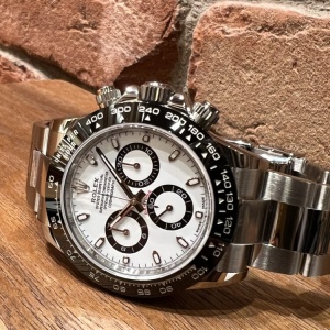 2016年から2023まで製造されていたデイトナRef.116500LNです。デイトナと言えば真っ先にこちらのモデルを想像される方も多いんではないでしょうか?ベゼルは傷、腐食、紫外線に強いセラミック素材を採用されています。ダイヤルはシリーズ一番人気のホワイト、男性はもちろん女性でもお使い頂けます!ロレックスの中でも抜群の資産性と知名度を誇るのが116500LN。やはり、皆様憧れの1本ではないでしょうか。是非一度ご覧下さいませ♪
