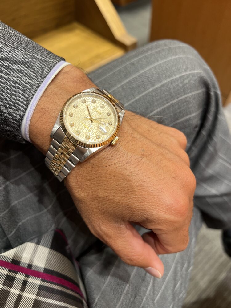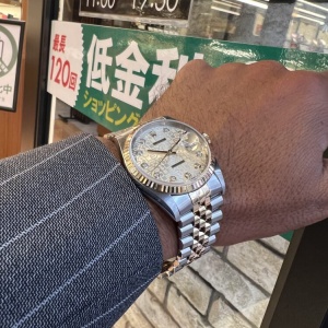 遊び心の効いた… 増田 シニアエキスパート クォーク神戸店 2025.11.11 スタンダードモデルの王道デイトジャスト。3時位置にデイト機能を備えており実用性は抜群です。ダイヤルには10個のダイヤモンドが輝き、遊び心の効いたシャンパンコンピューター柄がお洒落ですね♪ブレスレットはジュビリー仕様でロレックスの象徴的なデザインとして幅広い年齢層から人気を集めております。是非一度店頭でご覧くださいませ。 デイトジャスト 中古品 クォーク神戸店 このスタッフへ問い合わせる この商品の詳細はこちら