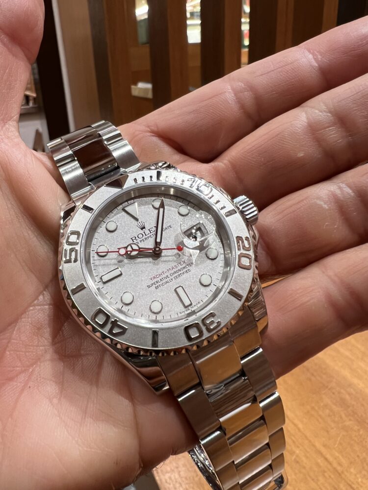 今はなきプラチナ 増田 シニアエキスパート クォーク神戸店 2025.11.23 1999年から2012年まで製造されたヨットマスターRef.16622です。ダイヤルとベゼルに最高級素材のプラチナを採用しているラグジュアリーな質感が魅力です。秒針とYACHT-MASTERのロゴが赤いのが特徴ですね♪スポーティーなデザインも素敵です! 中古品 ヨットマスター クォーク神戸店 このスタッフへ問い合わせる この商品の詳細はこちら