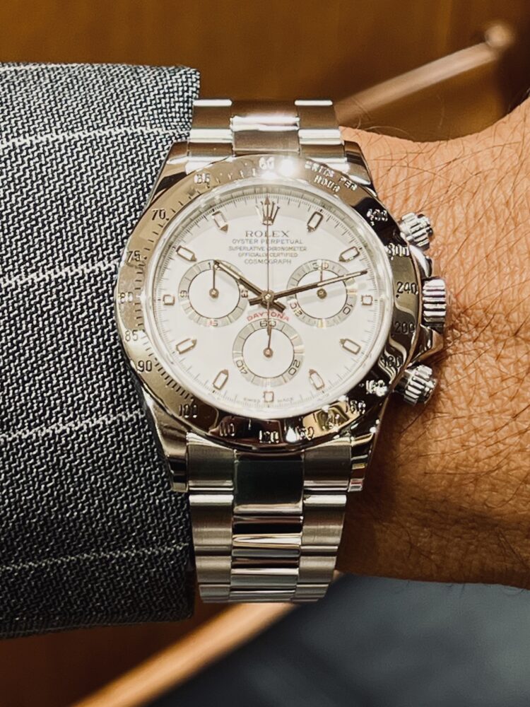 絶対的存在 増田 シニアエキスパート クォーク神戸店 2026.01.27 2000年から2016年まで製造されていたデイトナRef.116520。待望のロレックス自社開発ムーヴメントcal.4130を搭載しています。ベゼルはステンレス製でダイヤルは爽やかで視認性に優れたホワイトになります。2016年にセラミック製ベゼルが登場したことで惜しまれつつも生産終了となりました。生産終了後も不動の人気を誇り、数あるデイトナの中でも絶対的な存在です。 デイトナ 中古品 クォーク神戸店 このスタッフへ問い合わせる この商品の詳細はこちら