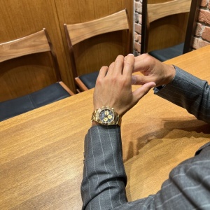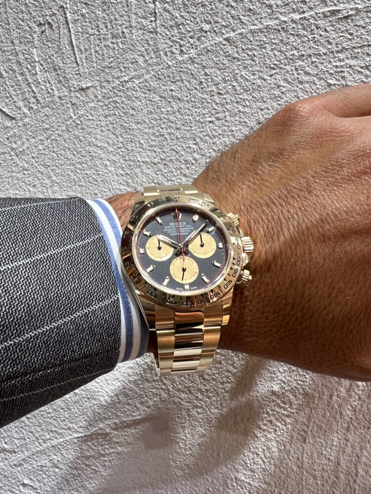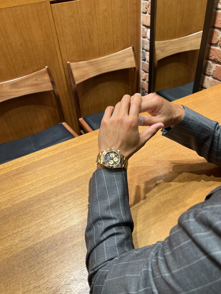 2016年から2023年まで製造されていたデイトナRef.116508。煌びやかな雰囲気が漂うオール18Kイエローゴールドにダイヤルはブラックシャンパンインダイヤルが絶妙に合います。腕にズッシリとくる18Kイエローゴールドの重量感が魅力です!