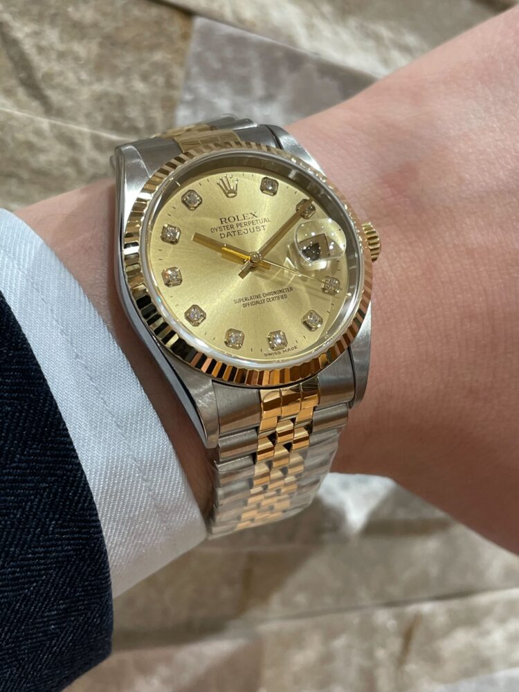 ザ・コンビネーション 松本 クォーク福岡店 2026.01.14 【DATEJUST / Ref.16233G】 この年代辺りのコンビモデルも価格上昇が見込まれそうな予感。 (イエローゴールドコンビ×ジュビリーブレスレット)+(ダイヤモンド×シャンパンダイヤル)=謎の数式の様な組み合わせが所謂『ザ・コンビモデル!』と言った組み合わせ。 今やこの王道の組み合わせが若年層にもウケております。 いつでも買えそうと思っても気が付けば在庫が・・・価格が・・・・物があるうちにいかがでしょうか? 中古品 デイトジャスト クォーク福岡店 このスタッフへ問い合わせる この商品の詳細はこちら