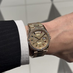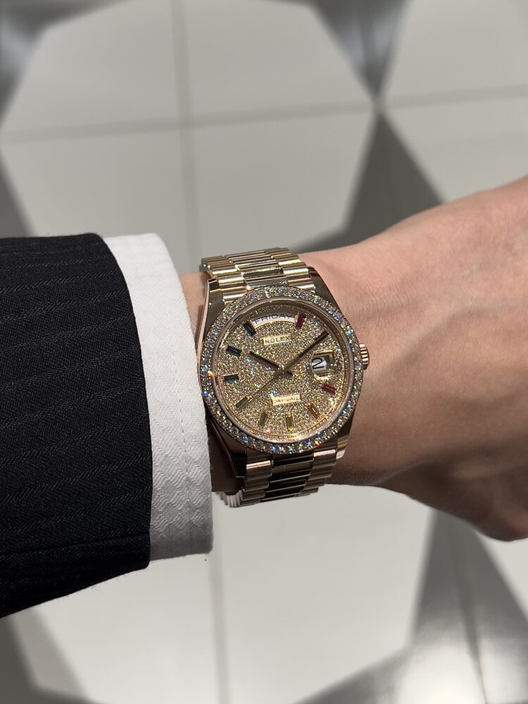 アルティメットなデイデイト 中村 クォーク心斎橋店 2025.12.12 パヴェダイアルにカラフルなサファイアインデックス、ベゼルにはこれでもかとダイアモンドがセッティングされているピンクゴールドのデイデイト「128345RBR」のご紹介です。 やりすぎ???と思ってしまいますが、デイデイトだとラグジュアリーでかっこいい!と腑に落ちる。 デイデイトはやっぱりスーツに合いますね。 是非、腕元にどうぞ。 中古品 デイデイト クォークサロン大阪 このスタッフへ問い合わせる この商品の詳細はこちら