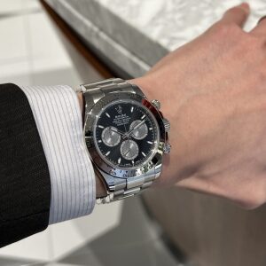 ブライトブラック&スチールのダイヤルは、スポーティーな雰囲気と重厚感を見事に両立させています!