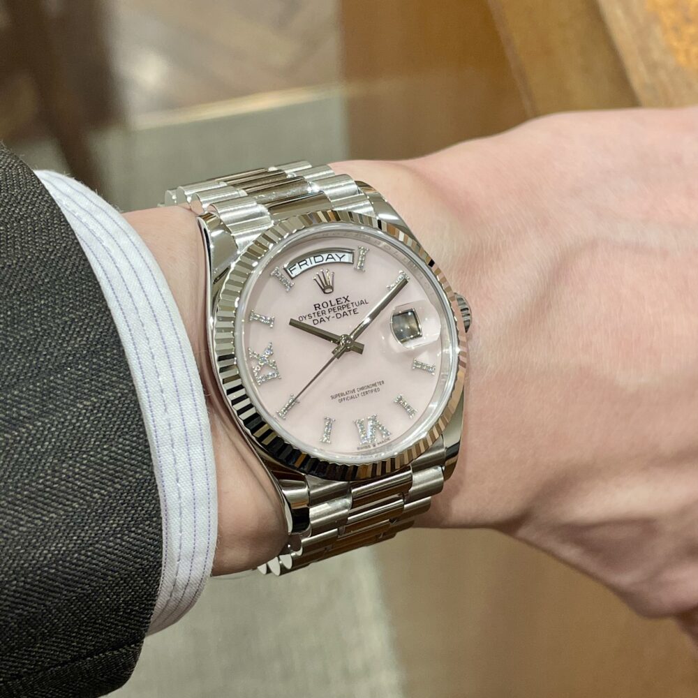 新年明けましておめでとうございます。 中村 クォーク心斎橋店 2026.01.02 明けましておめでとうございます。 本年も何卒宜しくお願い申し上げます。 新年一発目は豪華で可愛らしいデイデイト【Ref.128236 ピンクオパールローマⅥ&Ⅸダイヤ】をご紹介いたします! ピンクオパールをダイヤルに採用しており、男性・女性共に使いやすい優しい色合いのピンク色。 ダイヤのローマ数字は上品さを演出してくれ、腕元をキラキラと彩ってくれます! 是非、腕元にどうぞ。 中古品 その他 デイデイト クォーク心斎橋 このスタッフへ問い合わせる この商品の詳細はこちら
