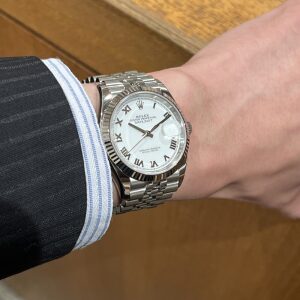 言うなれば紳士のような。 中村 クォーク心斎橋店 2026.01.27 本日は爽やかで上品な印象がある【DATEJUST Ref.126234】をご紹介いたします! ステンレス×18Kホワイトゴールドコンビモデルのデイトジャスト。 美しいカッティングが施された18Kホワイトゴールド製のフルーテッドベゼルは、光の当たり具合でキラキラと輝いてくれます。 ホワイトローマダイヤルとジュビリーブレスの相性良く、紳士のような品格を感じます! カジュアルからフォーマルまでお使いいだけます! 是非、腕元にどうぞ。 デイトジャスト 中古品 クォーク心斎橋 このスタッフへ問い合わせる この商品の詳細はこちら