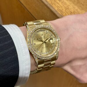 激レア!? シャンパンストリングダイヤモンド 中村 クォーク心斎橋店 2026.02.20 本日はバブリーなスペシャルモデル【DAY-DATE Ref.18388LB】をご紹介いたします! 1988年〜2000年までの間に生産された5桁デイデイト。 ミニッツサークル・インデックス・ベゼル・ラグと至る所にダイヤが使用されておりラグジュアリーな1本! 是非、腕元にどうぞ。 中古品 デイデイト クォーク心斎橋 このスタッフへ問い合わせる この商品の詳細はこちら