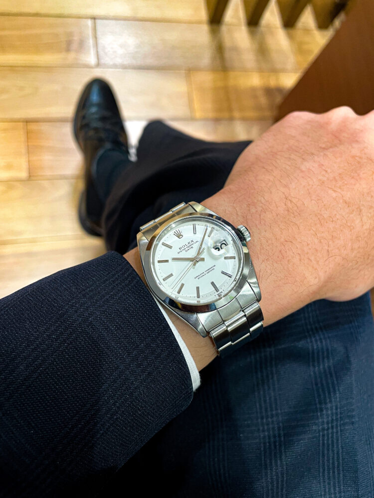 このRef.1500はダイヤルのバリエーションが非常に多いです。店頭ではシルバー系の個体を見かける機会が多いです。その為、ホワイトダイヤルというだけでも珍しいモデルです。