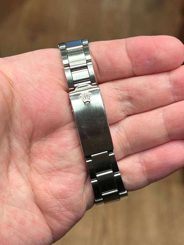 ブレスレットは年式に合うスイス製19mm巻きブレス7835が装着されており、ヴィンテージの雰囲気を一層引き立てています。