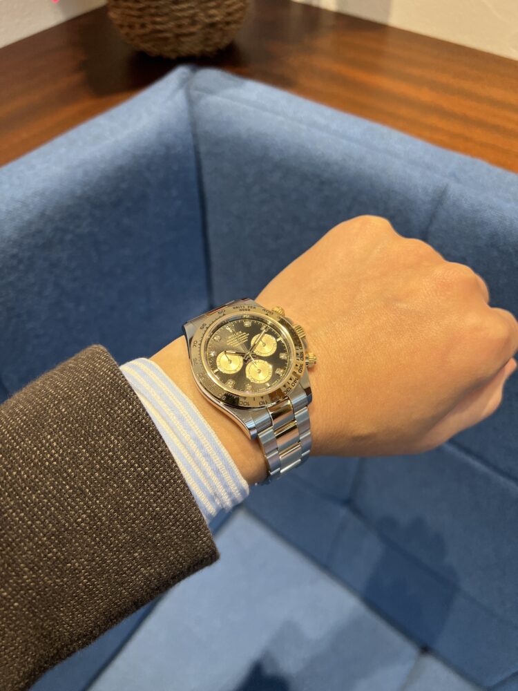 『輝きが半端ない!』 尾崎 店長 クォーク静岡店 2025.10.19 『輝きが半端ない!』 ROLEX DAYTONA Ref.126503G(ブライトブラック&ゴールデン8Pダイヤ) 煌びやかに輝く18Kイエローゴールドと文字盤には8石のダイヤモンド インダイヤルも光の反射によりキラキラと共鳴します 一際存在感を放つ!そんな時計です ケースサイズ40mm 尾崎腕回り16cm デイトナ クォーク静岡店 このスタッフへ問い合わせる この商品の詳細はこちら