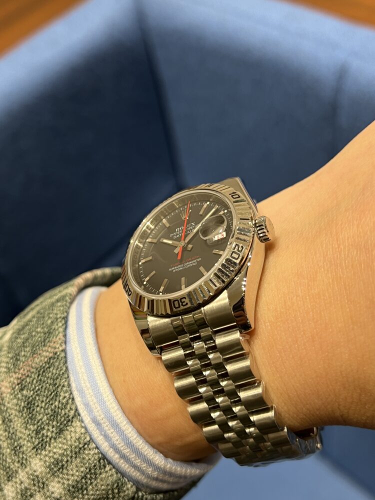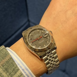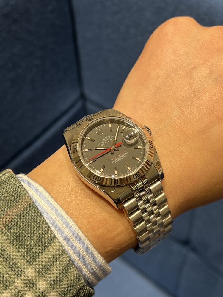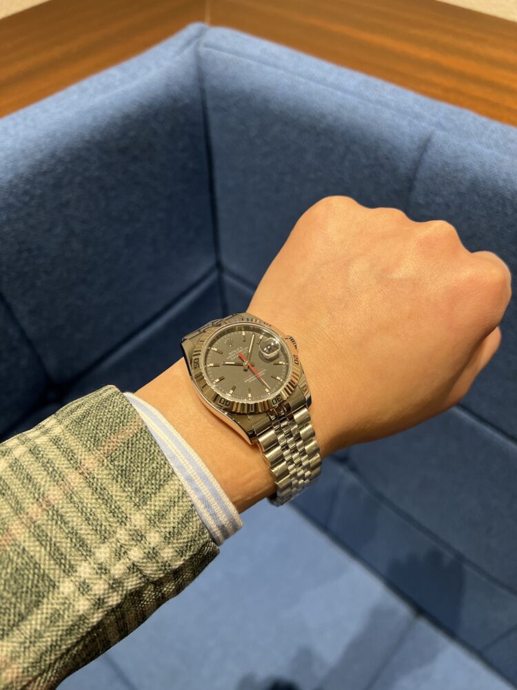 『1/31現在、在庫1本限り』 尾崎 店長 クォーク静岡店 2026.01.31 『1/31現在、在庫1本限り』 ROLEX TURN-O-GRAPH Ref.116264(ブラック) 【2006年製】 スポーティな赤い差し色(秒針・モデル表記・カレンダー)と高級感あるベゼルとジュビリーブレスの組み合わせ 生産終了モデルのため、在庫は全店にて1本のみ(2026年1/31現在) こんないいとこ尽くしな時計他にありますか? お問い合わせお待ちしております! ケースサイズ36mm 尾崎腕回り16cm デイトジャスト このスタッフへ問い合わせる この商品の詳細はこちら