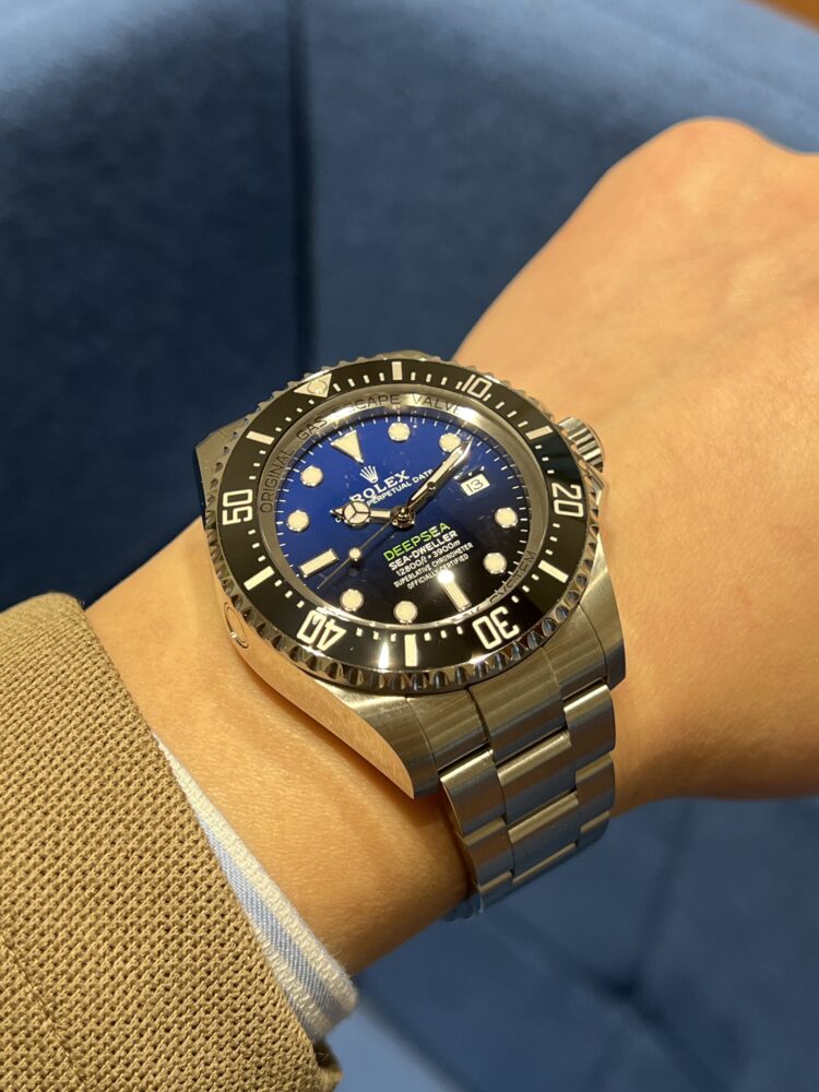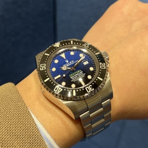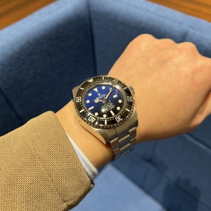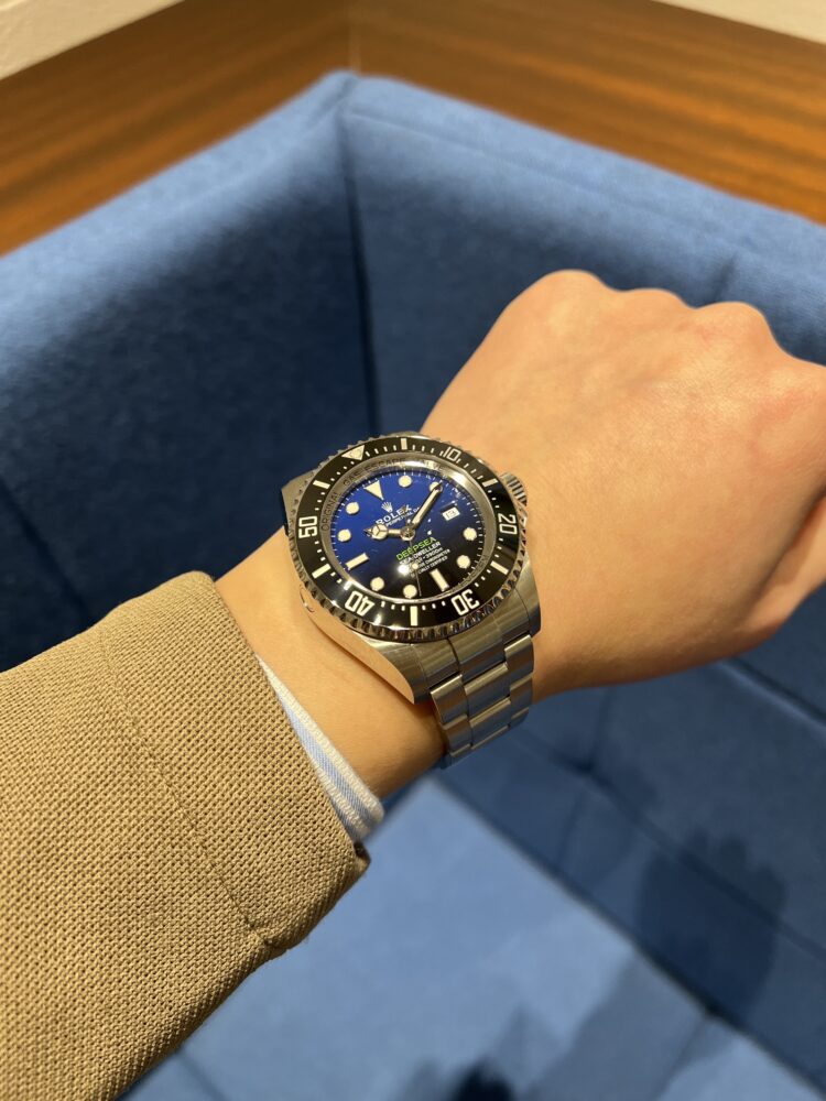 『大迫力‼プロスペックダイバーズ』 尾崎 店長 クォーク静岡店 2026.02.08 『大迫力‼プロスペックダイバーズ』 ROLEX DEEP SEA Ref.126660(Dブルー) 【2021年製】 2018年~2022年まで製造されていた第2世代ディープシー 新世代ムーブメントCal.3235を搭載することで6時位置にクラウンマークが印字されている サイズはプロスペックダイバーズに相応しい44mmケースを採用 厚みもあり腕元での存在感はロレックスの中でも群を抜いている ケースサイズ44mm 尾崎腕回り16cm 中古品 シードゥエラー クォーク静岡店 このスタッフへ問い合わせる この商品の詳細はこちら