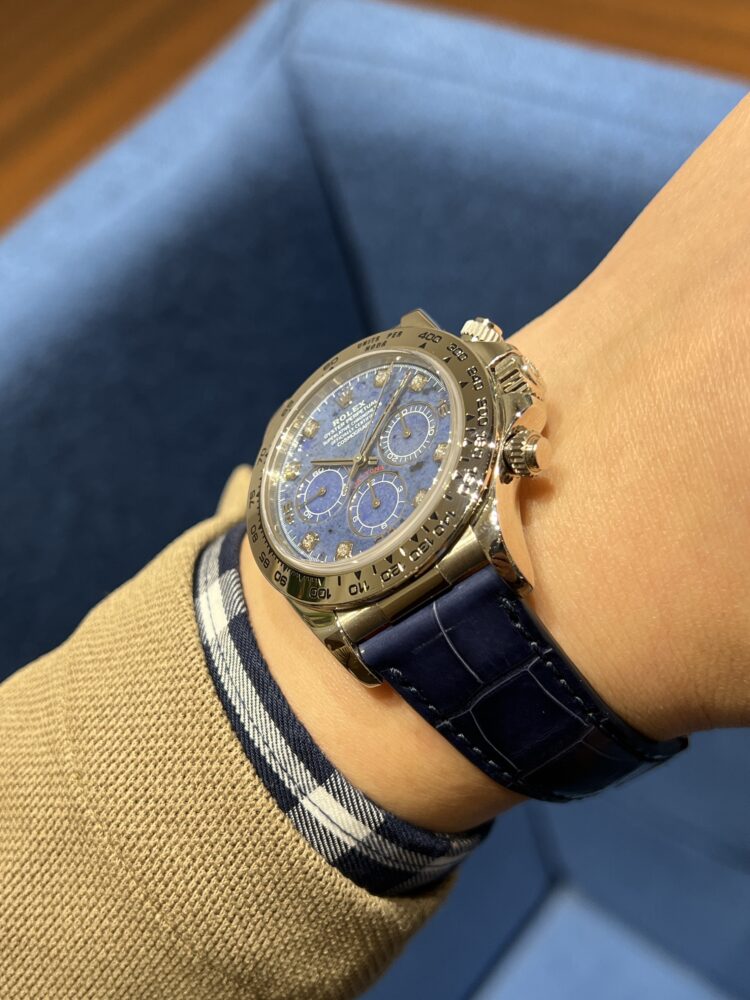 『ソーダライト』 尾崎 店長 クォーク静岡店 2026.02.27 『ソーダライト』 ROLEX DAYTONA Ref.16519G(ソーダライト) 【1999年製】 ご存じでしょうか⁉ ソーダライト 濃い深みのあるブルーに斑模様が特徴の天然石となります インデックスにはダイヤモンドが8石配置されており、上品な高級感を堪能できます ブルーのレザーバンドとの相性も素敵ですね! ケースサイズ40mm 尾崎腕回り16cm デイトナ プレミアムモダン クォーク静岡店 このスタッフへ問い合わせる この商品の詳細はこちら