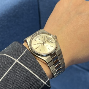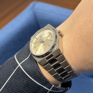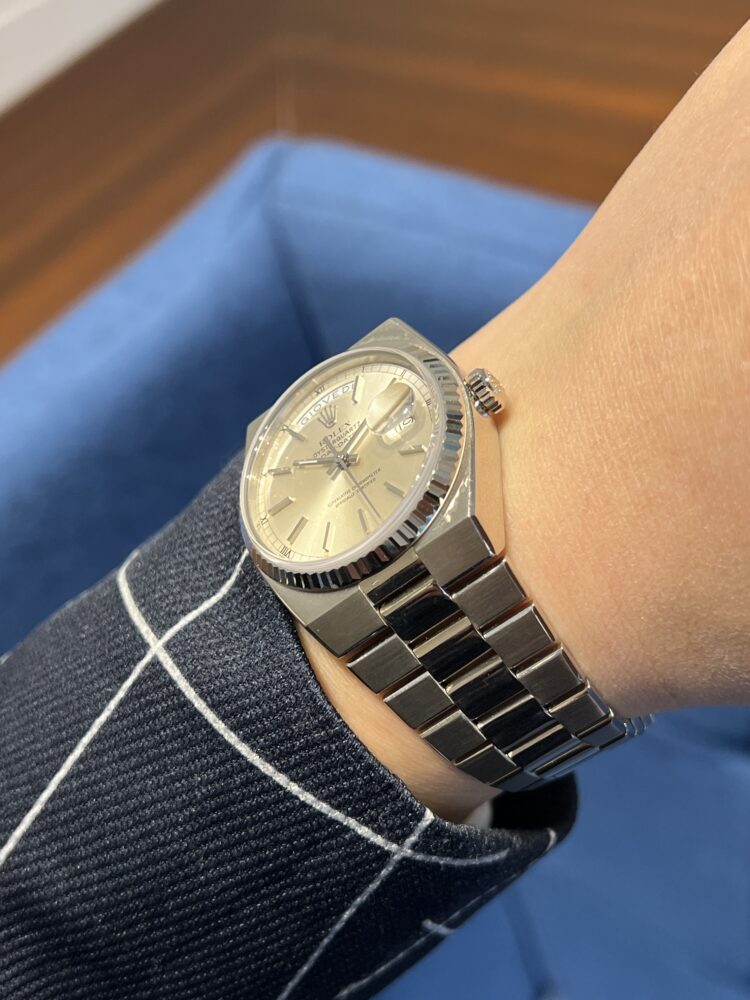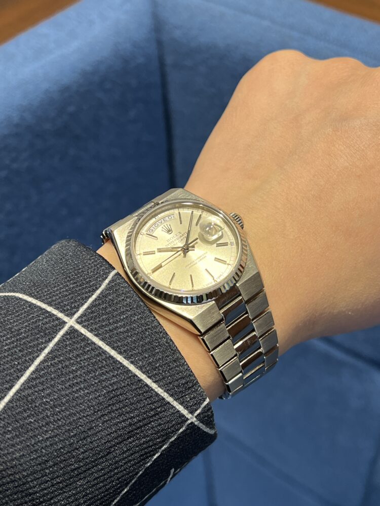 『唯一無二の存在感』 尾崎 店長 クォーク静岡店 2026.03.23 『唯一無二の存在感』 ROLEX DAY-DATE Ref.19019 【1979年製】 ケース一体型ブレスレットが美しさと人目を引く存在感を併せ持つデイデイト(クォーツ) 2025年に登場したランドドゥエラーはオイスタークォーツをオマージュした造りといっても過言でないほど、継承している部分は多いと思います 本日ご紹介させていただくホワイトゴールド仕様は個体数も少なく探している方も多いのではないでしょうか? 詳細はこちら 素敵です! ケースサイズ36mm 尾崎腕回り16cm ヴィンテージ デイデイト クォーク静岡店 このスタッフへ問い合わせる この商品の詳細はこちら