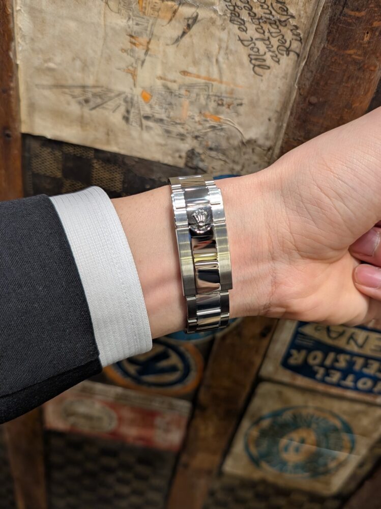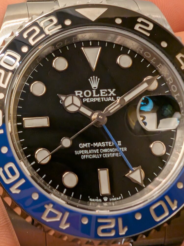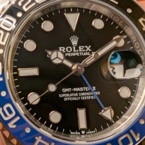 落ち着いた色合いですのでフォーマルな装いにも合わせやすいGMTマスターII。