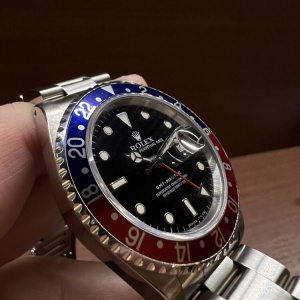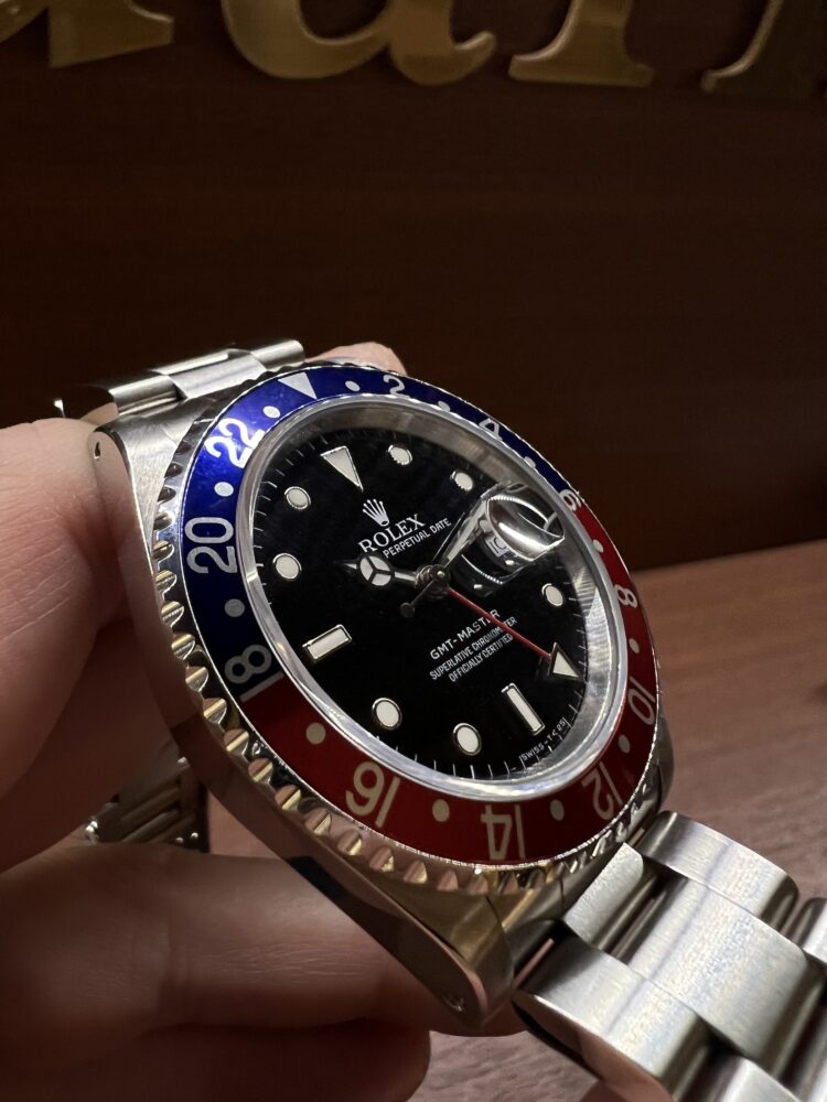 みんな大好きシングルブレス 高須 シニアエキスパート クォーク名古屋栄店 2025.10.11 本日はGMTマスターI Ref.16700をご紹介致します。 ヴィヴィットは赤青ベゼルが腕元を華やかに演出してくれます。 1991年製のN品番です。 ブレスはシングルロックブレスで、ダイヤルの夜光塗料はトリチウム! いわゆるシングルトリチです。 1時方向のラグ角に若干の凹みと、ベゼルディスクに擦り傷はございますが、年式を考慮すれば当然とも言える傷です。 それよりも、腕に着けた時の満足度の方が高いと思います。 シングルトリチを探している方に是非 お薦めです。 GMTマスター プレミアムモダン クォーク名古屋栄店 このスタッフへ問い合わせる この商品の詳細はこちら