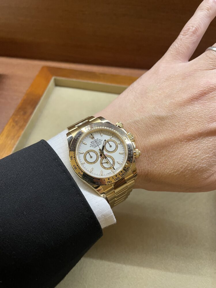 金価格高騰!金の価値+デイトナの価値 高須 シニアエキスパート クォーク名古屋栄店 2026.01.15 本日は、デイトナの金無垢 ホワイトダイヤルをご紹介します。 Ref.126508 2024年製、保証書付き ここ最近のゴールド価格の高騰を受け、 注目されているモデルです。 ロレックスの中でも群を抜いて資産価値の高いデイトナ!ゴールド価格の上昇とともに益々、今後に期待が持てると思います。 デイトナ 中古品 クォーク名古屋栄店 このスタッフへ問い合わせる この商品の詳細はこちら