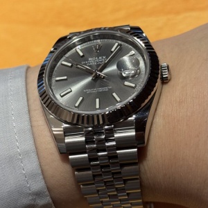 赤色の『YACHT-MASTER』が程よいアクセントとなっており、締まった印象になっております!文字盤カラーはブラックですがマットなカラーで大人の印象が漂います!少しグレー系の色味に近いブラックとなっております。ブラウンダイヤルも人気ですがブラックも捨てがたいですね。好みは分かれるところですが、普段使いをするならブラックがおすすめです!