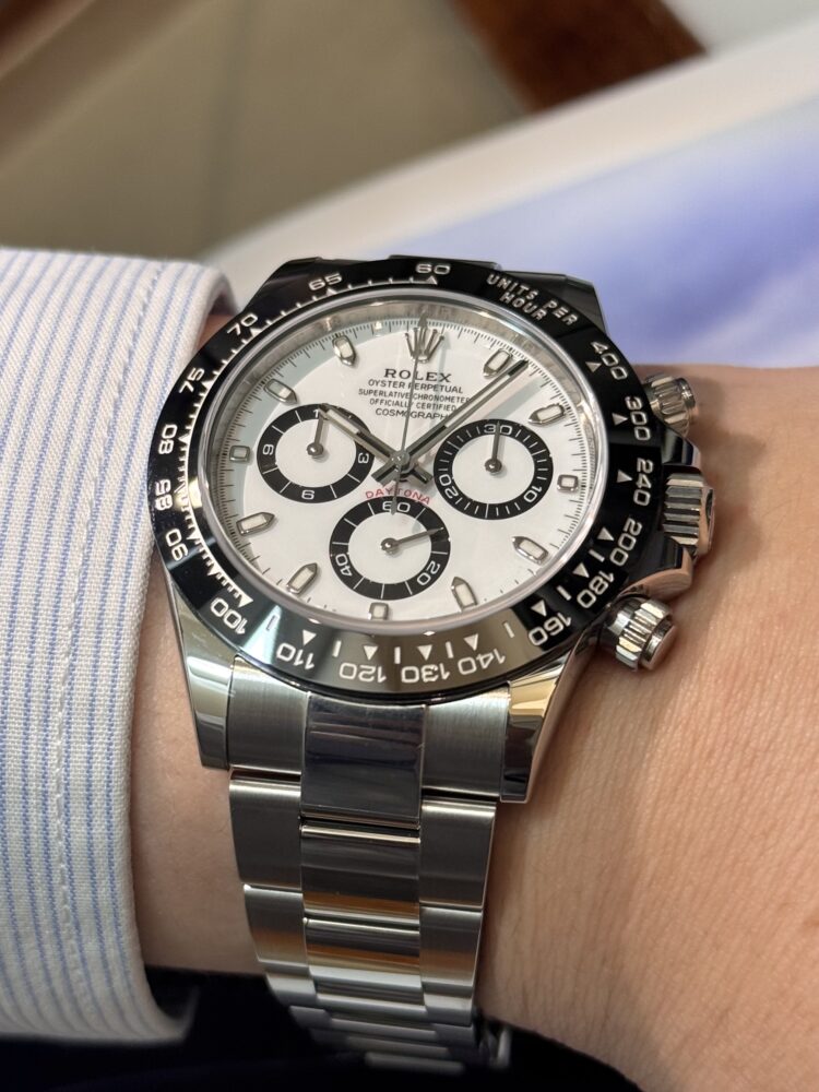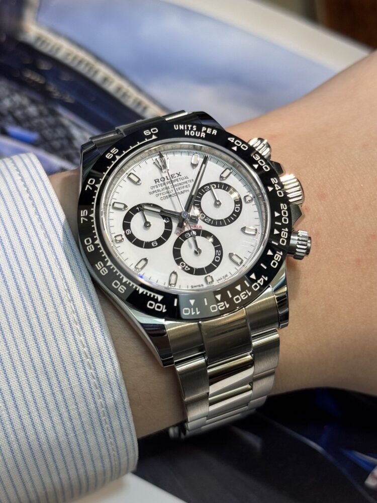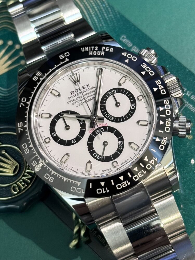 中でもホワイトダイヤルは「パンダ」の愛称で親しまれ、清潔感ある白文字盤にブラックのサブダイヤルが映える、スポーティーかつエレガントな一本です。