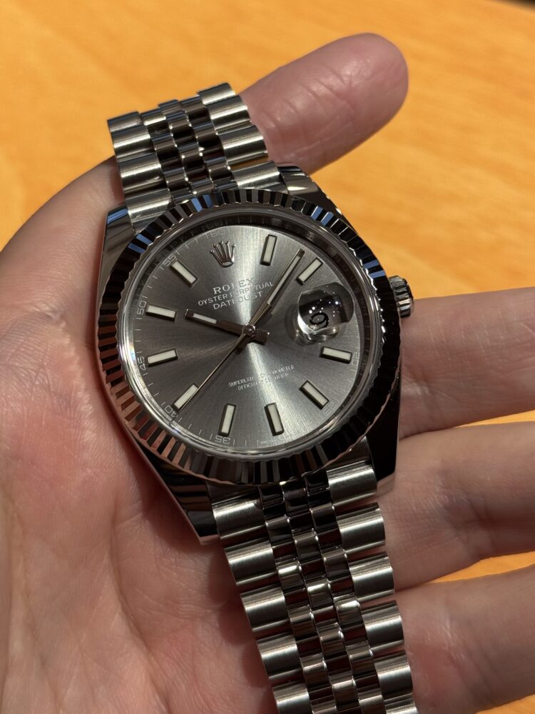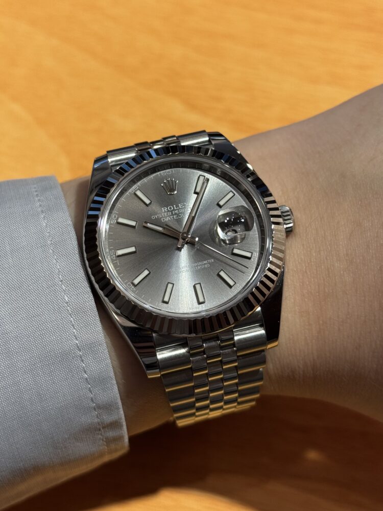 需要も高い、唯一無二の存在感 竹内 クォーク横浜店 2025.10.24 デイトジャスト41 Ref.126334 スレートダイヤル 2023年製 洗練されたグレートーンが印象的なスレートダイヤル仕様のデイトジャスト41。 フルーテッドベゼルとジュビリーブレスレットの組み合わせが、王道の高級感を引き立てつつも、どこか現代的でスマートな印象を与えます。 見る角度によって光の表情を変える文字盤は、落ち着いた中に確かな存在感を放ち、ビジネスからフォーマルまで幅広いシーンにマッチ。 大人の腕元に、ロレックスらしい品格と洗練を添える一本です。 デイトジャスト 中古品 クォーク横浜店 このスタッフへ問い合わせる この商品の詳細はこちら