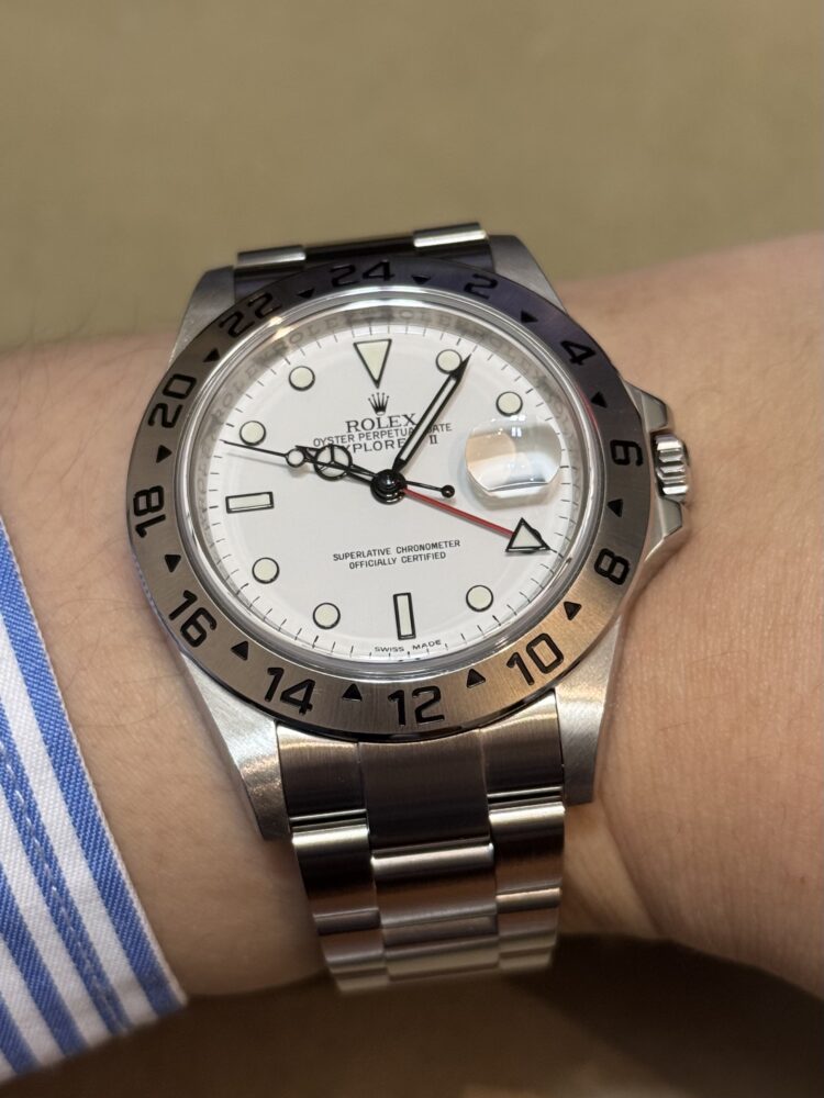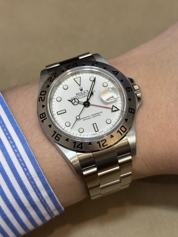 雪原のように澄み渡るホワイトダイヤルが印象的な、エクスプローラーⅡ Ref.16570。