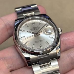 ケースサイズは扱いやすい36mm。腕元に自然に馴染み、スーツ・ビジネスカジュアル・オフスタイルまで幅広く対応。さらに、Cal.3135を搭載し、高い精度と信頼性を備えたモデルとして長く愛されてきました。初めての一本としても、既にコレクションをお持ちの方にも選ばれる理由がここにあります。