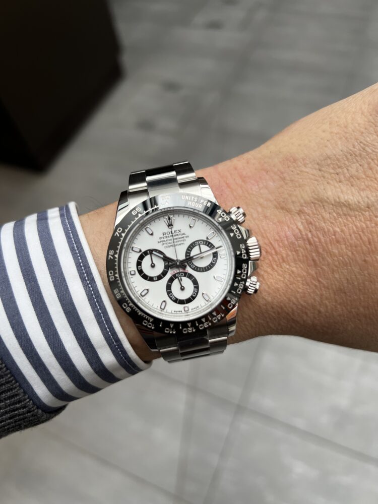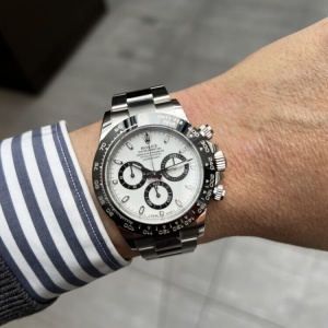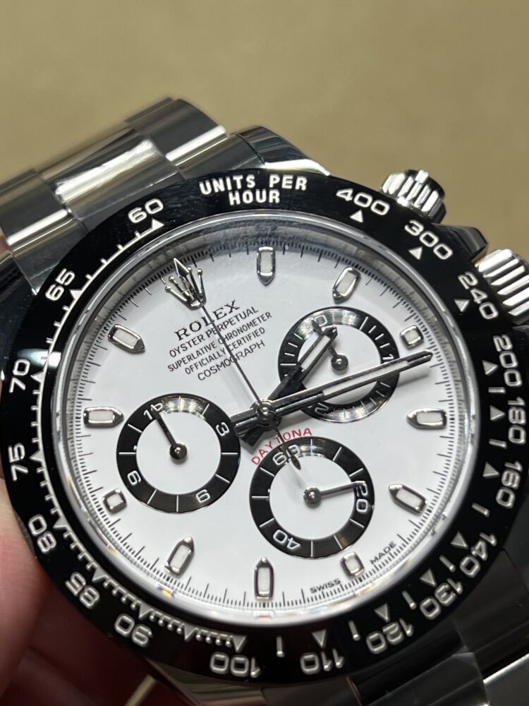 やはりこのモデルが好き 辻 副店長 クォークサロン大阪 2026.03.07 ロレックス=デイトナ と呼ばれるほど、人気がありすぎるデイトナ。 私もいつかは手にしたいモデルです。 今回は紹介するのは1世代前のデイトナ。 パンダ文字盤が時代とマッチしたのでしょうか、 ロレックスの代表モデルとなりました。 ベゼルとインダイヤルの統一感、デイトナ初の セラミックベゼルを採用したモデルです。 やはりカッコいい。。。 お悩みは店頭で。 デイトナ 中古品 クォークサロン大阪 このスタッフへ問い合わせる この商品の詳細はこちら