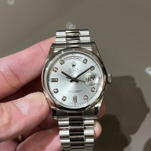 小振りの時計がいい 辻 副店長 クォークサロン大阪 2026.03.08 最高峰モデルデイデイト。 その中でもプラチナ+アイスブルーは特別です。 旧型のデイデイト Ref.118206A 2006年製のモデルのためアイスブルーは薄めでは ありますが、色んな角度から見ていただくと アイスブルー、シルバーの顔が見れ何とも言えない 表情になっています。 また最近ではクラシカルなモデルが人気で小振りの モデルを探されている方も多くなって参りました。 あの時は買えなかったプラチナ デイデイト! 是非手に取ってご検討ください。 中古品 デイデイト クォークサロン大阪 このスタッフへ問い合わせる この商品の詳細はこちら