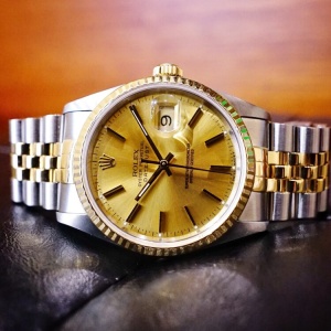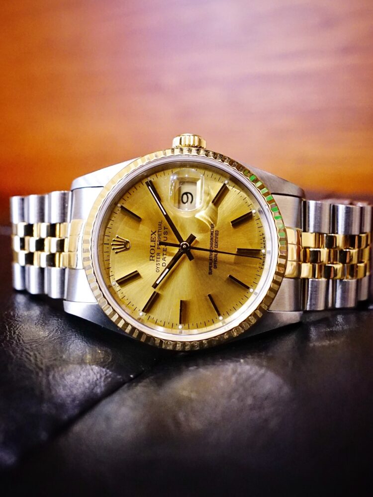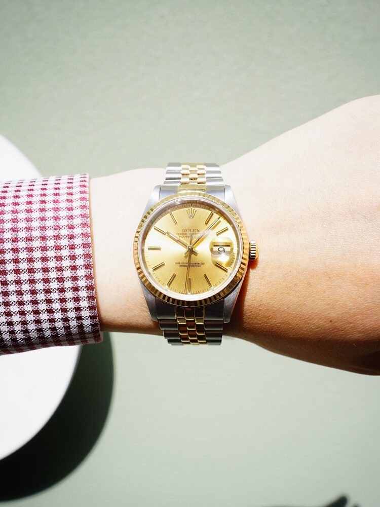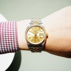 デイトジャストのイエローゴールドコンビに、シャンパンダイヤル。