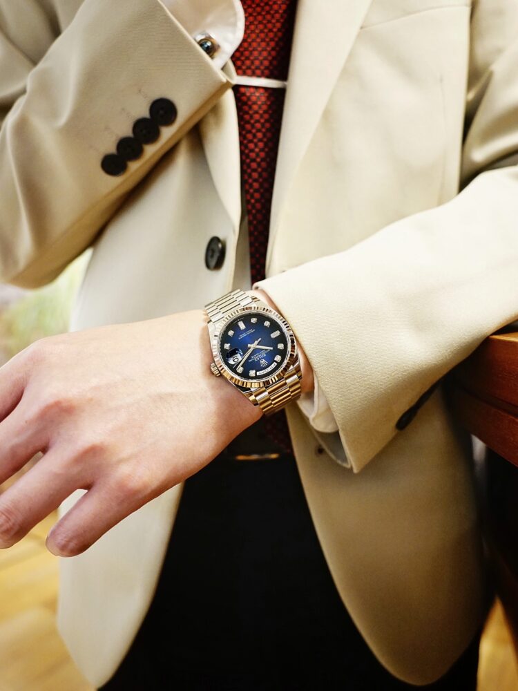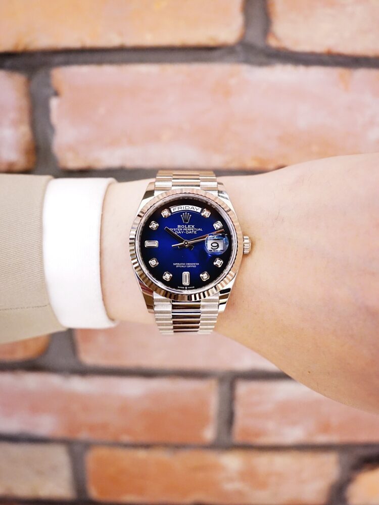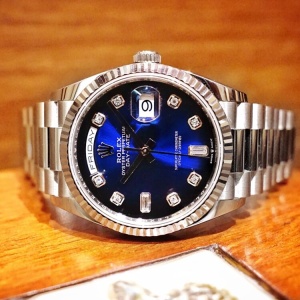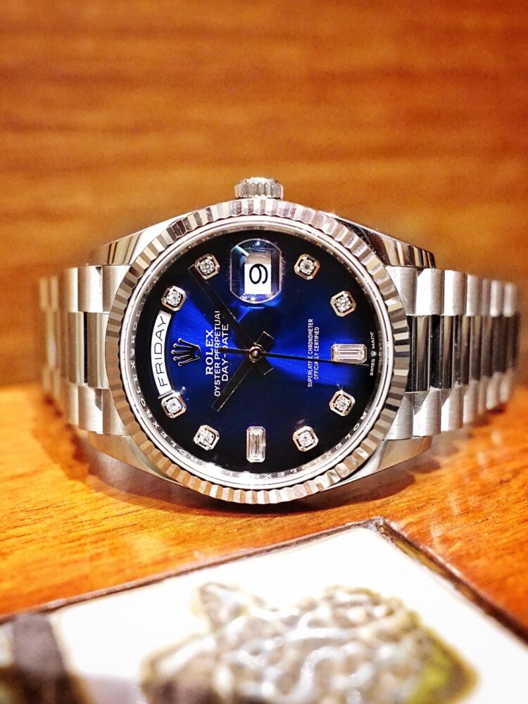 ホワイトゴールドに、綺麗なブルーのグラデーションが映えるデイデイト。