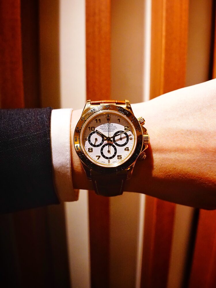 ゴールドにレザーブレス仕様のエルプリデイトナは、現在3本のみですので、お探しの方はお早めに。
