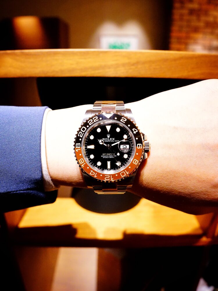 ベゼルのブラック/ブラウンとの相性もバッチリで、大人の余裕さを感じさせる1本です。
