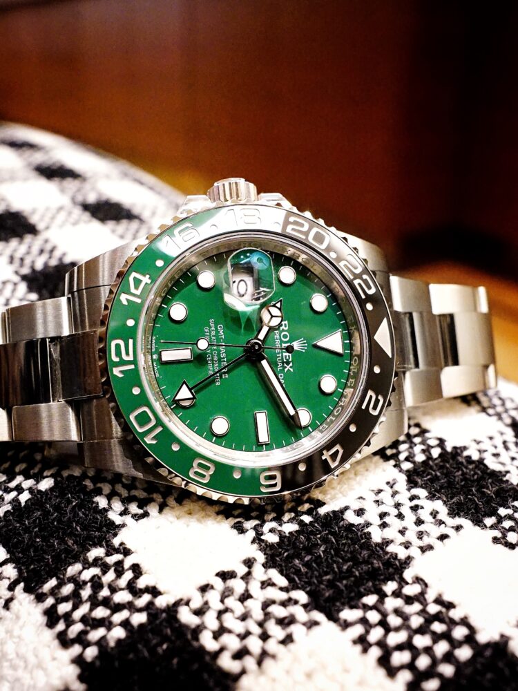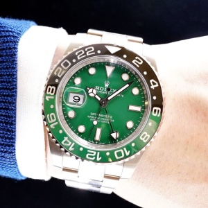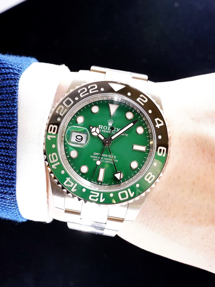 緑/黒のセラミックベゼルに、ロレックス初のセラミックダイヤルを採用した1本です。