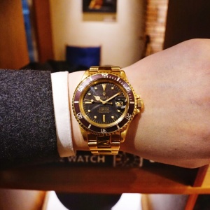 サブマリーナ初のデイト表示を備えたRef.1680の、18Kイエローゴールドモデルです。