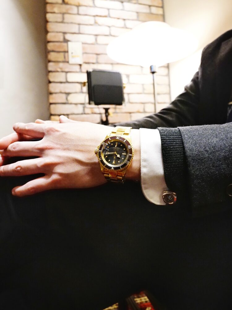 またこちらは、1971年製で痩せ感はあるものの、ベゼルの退色はボルドーのような色味で唯一無二で、保証書が付属している個体です。