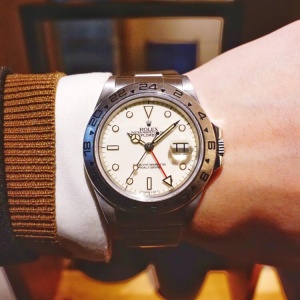 日本語で象牙色と表現される、アイボリーダイヤルを備えたエクスプローラーⅡ。